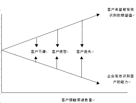當(dāng)然, 這種識(shí)別不僅包括接觸之始的基本信息的識(shí)別, 更包括客戶與企業(yè)通過不同渠道接觸的詳盡信息的了解掌握, 以及在此基礎(chǔ)上的有的放矢的的溝通與服務(wù)內(nèi)容的到位. 客戶關(guān)系管理系統(tǒng)的應(yīng)用發(fā)展導(dǎo)致了這樣一個(gè)悖論: 技術(shù)越發(fā)展, 通路越增加,你和客戶的個(gè)性關(guān)系可以越緊密, 但相反結(jié)果的可能性也變得越大.