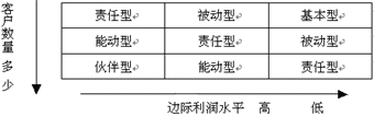 需要指出的是這5種程度的客戶關(guān)系類型并不是一個簡單的從優(yōu)到劣的順序,企業(yè)所能采用的客戶關(guān)系的類型一般是由它的產(chǎn)品以及客戶決定的, 比如寶潔公司它的洗發(fā)水、洗衣粉的客戶之間是一種被動性的關(guān)系:寶潔設(shè)立客戶抱怨處理機構(gòu),處理客戶投訴,改進產(chǎn)品;但是寶潔和沃爾瑪特之間卻可以建立互惠互利的伙伴性關(guān)系。科特勒根據(jù)企業(yè)的客戶數(shù)量以及企業(yè)產(chǎn)品的邊際利潤水平提供了一個表格幫助企業(yè)選擇自己和是的客戶關(guān)系類型。