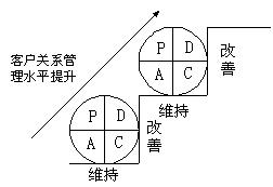 容,而PDCA環(huán)在客戶關(guān)系管理中不斷循環(huán)的結(jié)果就是企業(yè)客戶關(guān)系管理水平的不斷推進,這個過程可以用上圖表示。 |