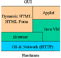 Dynamic HTML可以很好地進(jìn)行公開(kāi)信息的發(fā)布,通過(guò)HTML Form機(jī)制可以從瀏覽器中得到用戶檢索等簡(jiǎn)單操作的輸入信息。對(duì)于無(wú)須身份認(rèn)證、訪問(wèn)控制的內(nèi)容,在Web Server上可以使用通常的CGI技術(shù)獲取用戶的請(qǐng)求、查詢條件,通過(guò)Web Connector還可以使用應(yīng)用服務(wù)其提供的后臺(tái)服務(wù),結(jié)果使用HTML方式描述,并可直接回送到客戶端的瀏覽器。如果進(jìn)一步使用Applet技術(shù),還可以在客戶端實(shí)現(xiàn)更為友好的交互式顯示模式。無(wú)論是使用DHTML技術(shù)還是HTML Form加上Server方擴(kuò)展(如CGI, ISAPI, NSAPI, fastCGI和servlet等)。它們適合處理的業(yè)務(wù)都是每次請(qǐng)求/應(yīng)答基本獨(dú)立,相互無(wú)關(guān)聯(lián)的情況。對(duì)于一些更為復(fù)雜的應(yīng)用,要求前后操作具有相關(guān)性,客戶與服務(wù)器端各自保持狀態(tài)的變化且狀態(tài)是相關(guān)的。在這種情形之下,更好的解決方案是將客戶端的所有操作保持在一個(gè)Applet中完成,由Applet直接與Web Server交互數(shù)據(jù)來(lái)完成請(qǐng)求/應(yīng)答數(shù)據(jù)的交互。