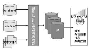 由于客戶數(shù)據(jù)量很大,為了在不同的數(shù)據(jù)庫中將大量的數(shù)據(jù)進行整合,數(shù)據(jù)處理效率十分重要。在實現(xiàn)中不直接操作數(shù)據(jù)庫而使用文本文件的優(yōu)勢在于DataStage直接抽取文本文件數(shù)據(jù)的效率高于從數(shù)據(jù)庫中抽取,DataStage訪問數(shù)據(jù)庫時需要通過ODBC連接相應(yīng)的數(shù)據(jù)庫Driver,連接上數(shù)據(jù)庫后,從數(shù)據(jù)庫中抽取部分數(shù)據(jù)存放于DataStage