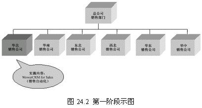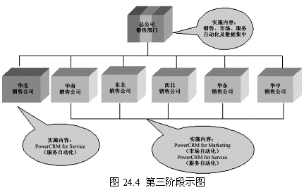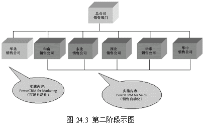 這一階段首先確立一個點(diǎn)(華北銷售公司),這個點(diǎn)的選擇要考慮多方面的因素,比如員工素質(zhì)、電腦應(yīng)用水平以及基礎(chǔ)設(shè)施等。第一階段目標(biāo)的實(shí)現(xiàn)對整個項目關(guān)系重大,是一個示范性的實(shí)施,對維持管理層和員工對CRM項目的信心具有重要的意義。