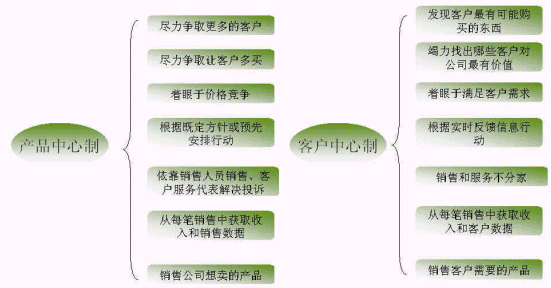 蓋洛普認(rèn)為新型的企業(yè)與客戶的關(guān)系應(yīng)當(dāng)是以"客戶為中心"與客戶的互動(dòng)關(guān)系,通過滿足客戶需求提高客戶滿意度來吸引和留住客戶,從而建立和保持企業(yè)的競爭優(yōu)勢(shì)。這其實(shí)就是從產(chǎn)品中心制到客戶中心制的演變的體現(xiàn),如下圖: