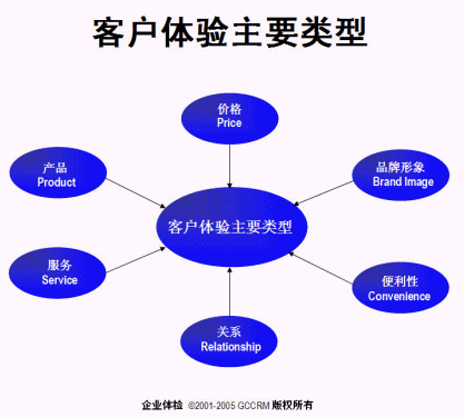 一家企業(yè)(或一個品牌)可以直接或間接讓客戶體驗的,主要類別為產品、服務、關系、價格、便利性、品牌形象。在不同行業(yè),對不同目標市場與客戶,每種類別的重要性各不一樣。但最終客戶體驗的好與壞都離不開這些因素,亦是客戶為什么光顧(或不光顧)的原因(見圖三、客戶體驗主要類型)。