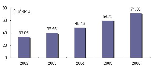 圖1 2002-2006年中國(guó)管理軟件市場(chǎng)規(guī)模與增長(zhǎng)
