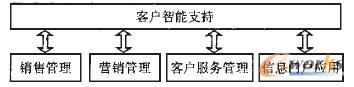 (5)客戶智能支持?蛻糁悄苤С痔幱谙到y(tǒng)功能平臺的核心地位,若把圖2中的5個模塊比作是人體的不同功能器官,客戶智能支持就相當于人的“大腦”。雖然CRM應用系統(tǒng)中其他模塊也具各一定的數(shù)據(jù)統(tǒng)計分析能力,但它們的主要功能定位在業(yè)務操作和客戶協(xié)作層面,客戶智能支持模塊則是完整的、以輔助決策為設計目標的分析型應用,其基礎數(shù)據(jù)來自于各CRM業(yè)務流程運行產生的大量數(shù)據(jù)及企業(yè)其他應用系統(tǒng)數(shù)據(jù)。
