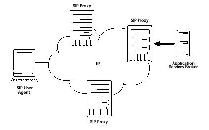 用戶終端程序往往需要包括用戶代理客戶機和用戶代理服務器。代理服務器、重定向服務器 和注冊服務器可以看作是公眾性的網(wǎng)絡(luò)服務器。在SIP中還經(jīng)常提到"定位服務器"的概念,但是定位服務器不屬于SIP服務器。SIP服務器請求定位服務的方式也不在SIP的討論范圍之內(nèi)。其在IP網(wǎng)絡(luò)中的實現(xiàn)如下所示。
