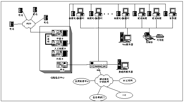 系統(tǒng)包括投訴建議處理、話路控制、秘書臺、電信業(yè)務咨詢、綜合統(tǒng)計、公告板、Web處理等業(yè)務模塊,以及系統(tǒng)用戶管理、錄音提取、基本設置、傳真管理等管理模塊,并實現了與97系統(tǒng)、112系統(tǒng)的互聯(lián)與資源共享。系統(tǒng)自九八年年底試運行以來,運行穩(wěn)定,為180臺受理用戶咨詢投訴的處理工作帶來較大幫助,基本解決了用戶投訴、查詢難的問題,提高了電信服務質量,改善電信行業(yè)形象。