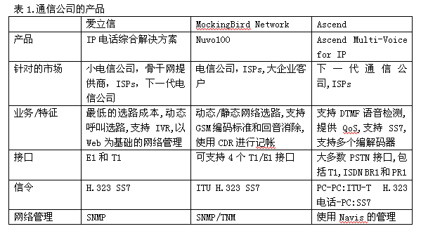 許多公司發(fā)布了IP電話產(chǎn)品,如表1所示。