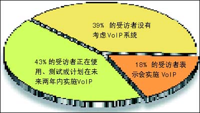 該調(diào)查收集了全球254名高級管理人員對未來企業(yè)網(wǎng)絡(luò)的意見和看法。其中,43%的受訪者表示,他們正在使用、測試或計劃在未來兩年內(nèi)實(shí)施VoIP;另外 18% 的受訪者表示,從長遠(yuǎn)的角度來講,他們會實(shí)施 VoIP。市場預(yù)測也顯示相同的樂觀前景。研究機(jī)構(gòu)Gartner Dataquest預(yù)期到2008年,公用電話交換網(wǎng) (PSTN) 的零售語音收入將輕微下跌,而VoIP的零售收入則上升 38.6%。