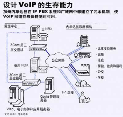 由于設(shè)計得當(dāng),加利福尼亞州內(nèi)華達(dá)縣的VoIP網(wǎng)絡(luò)在長達(dá)兩年的運行期間只有過5分鐘的停機(jī)。該縣桌面服務(wù)經(jīng)理Bill Miller指出,這部分停機(jī)時間還是按計劃進(jìn)行系統(tǒng)維護(hù)時造成的。