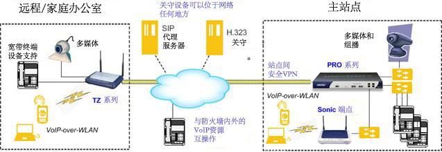 SonicWALL公司的完全VoIP解決方案為VoIP基礎(chǔ)設(shè)施提供了無(wú)與倫比的安全性,基于標(biāo)準(zhǔn)的VoIP兼容性,以及與全球大多數(shù)主要VoIP網(wǎng)關(guān)和通信設(shè)備的互操作性。