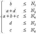 1, 2, …, 6) 表示第i個(gè)網(wǎng)關(guān)可以支持的最大呼叫數(shù)量,記通過鏈路A-C的最大呼叫數(shù)量為m, 則a, b, c, d和m滿足以下關(guān)系: