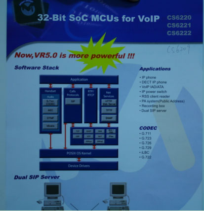 網(wǎng)關(guān)器及IP PBX應(yīng)用的市場(chǎng)的產(chǎn)品包括CS6209、CS6220、CS6221、CS6222、CS6223等,并提供了非常完善的解決方案。為了更好的服務(wù)于大陸客戶,目前,世紀(jì)民生在大陸的深圳、武漢和上海都設(shè)有分公司,并且在各分公司之間已經(jīng)在穩(wěn)定的使用VoIP來(lái)進(jìn)行溝通。