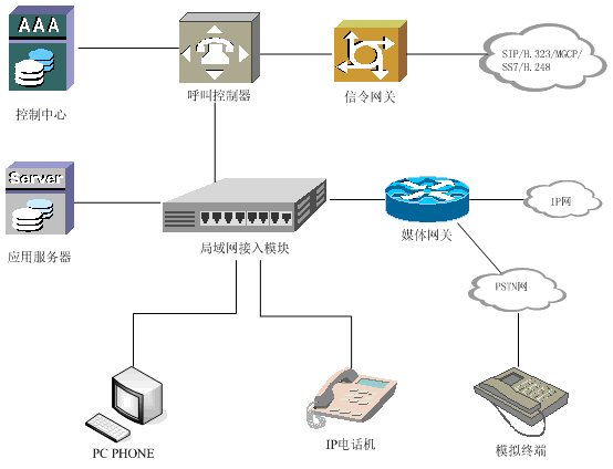 提供IP-PBX系統(tǒng)各組件之間的連接。在局域網(wǎng)的環(huán)境中,該模塊可以使用局域網(wǎng)交換機(jī)來代替。