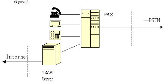 2、TSAPI技術(shù)標準:由Novell公司開發(fā)。它將程控交換機或中央電話系統(tǒng)與Netware網(wǎng)絡(luò)集成在一起。可以實現(xiàn)呼叫轉(zhuǎn)移,交互式語音(IVR)和自動呼叫分配(ACD)等功能。支持包括Windows各種版本、OS/2和Unix等目前主要操作系統(tǒng)。不同于TAPI ,TSAPI在計算機和桌面之間建立一個邏輯的連接,通過這些連接在任一端的TSAPI應(yīng)用就可以完成呼叫控制。由于TSAPI主要為Netware網(wǎng)操作系統(tǒng)增加電話服務(wù),不在每個電話和PC之間建立直接的連接,而是由一個電話服務(wù)器Netware可加載模塊(NLM)、一個電話服務(wù)器API(TSAPI)、一個電話服務(wù)器庫和一個電話客戶庫組組成在服務(wù)器電話系統(tǒng)間建立的連接,因此這個連接也稱為PBX-To-Server連接。電話服務(wù)器 NLM是負責(zé) PBX和 Netware服務(wù)器間傳送信息的。電話服務(wù)器 API是為運行于服務(wù)器上的應(yīng)用提供電話服務(wù)器API。三方連接在客戶--服務(wù)器組網(wǎng)中比單方連接有更大的靈活性。網(wǎng)上的每個用戶都可迅速地通過現(xiàn)有的LAN基礎(chǔ)結(jié)構(gòu)撥入PBX。對其他服務(wù)的接入,如主機或終端仿真、傳真、E-mail等,都可以通過CTI接口獲得,只要這些業(yè)務(wù)已經(jīng)存在于網(wǎng)上。結(jié)構(gòu)如圖: