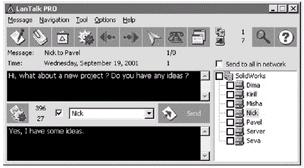 像ICQ、OICQ、MSN Messenger等即時通訊軟件必須登錄Internet后才能使用,并不支持局域網(wǎng),而LanTalk Pro是一款局域網(wǎng)即時通訊的專用軟件,通過它你可以快速、方便地與同一局域網(wǎng)中的任何人進(jìn)行實(shí)時交流。