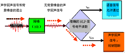NMS通信公司的回聲消除器產(chǎn)品采用了復(fù)雜的算法和技術(shù),以控制源自有線或無線網(wǎng)絡(luò)端點的聲學(xué)回聲。采用這些方法,能夠高度準(zhǔn)確地讀取相對信號的強度。它明顯增強了判斷精度,降低了"錯誤類型1"和/或"錯誤類型2"出現(xiàn)的概率。因此,NMS通信公司的解決方案能更有效地消除聲學(xué)回聲現(xiàn)象,而且不會引發(fā)信號衰落或語音消波問題。此外,這種對NLP操作的動態(tài)自適應(yīng)定時控制功能進(jìn)一步消除了聲學(xué)回聲現(xiàn)象,并改善了聲音質(zhì)量。