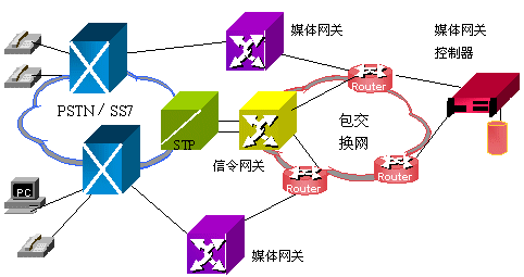 分布式VoIP網(wǎng)關(guān)是目前比較普遍的一種應(yīng)用,所以我們?cè)敿?xì)講解它的結(jié)構(gòu)。分布式VoIP網(wǎng)關(guān)包括三部分:信令網(wǎng)關(guān)、媒體網(wǎng)關(guān)和媒體網(wǎng)關(guān)控制器。
