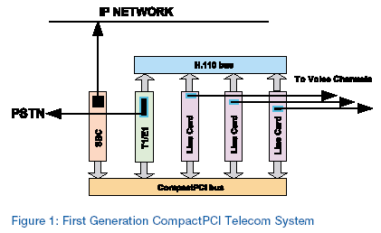 CompactPCI總線是中斷驅(qū)動(dòng)的,并且提供了對附屬CompactPCI外圍串行卡的確定性的控制。TDM,H.110數(shù)據(jù)總線為各個(gè)數(shù)據(jù)傳輸分配時(shí)隙。這種低時(shí)延的總線為實(shí)時(shí)應(yīng)用提供了優(yōu)異的性能。一個(gè)IP網(wǎng)絡(luò)(以太網(wǎng))接口能起到管理接入點(diǎn)或電信系統(tǒng)的管理點(diǎn)的作用。這樣的系統(tǒng)或許可以用作基本的計(jì)算機(jī)電話應(yīng)用,例如商用PBX。另外,IP接口可能被用作接入新的增值業(yè)務(wù)。