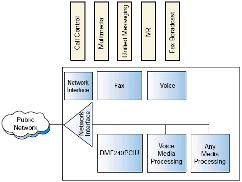 與其它網(wǎng)絡接口和媒體處理板卡結(jié)合起來, DM/F240-PCIU 和 DM/F300-PCIU定位為提供面向傳真服務器和統(tǒng)一消息市場段的產(chǎn)品.