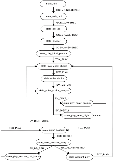 IVR參考程序(SimpleIvr)為想用R4和包括軟件開發(fā)包(SDK)的Global Call APIs 建立應(yīng)用程序的Dialogic用戶提供了演示代碼。該應(yīng)用程序用C++開發(fā),使用面向?qū)ο蟮姆椒ㄔ试S增加新的組件及對已有組件的重用。SimpleIvr應(yīng)用程序設(shè)計(jì)為單線程、異步,符合必要的性能需求,并使用了一些特殊的技術(shù),比如線程池,來處理長時(shí)間的運(yùn)轉(zhuǎn)。