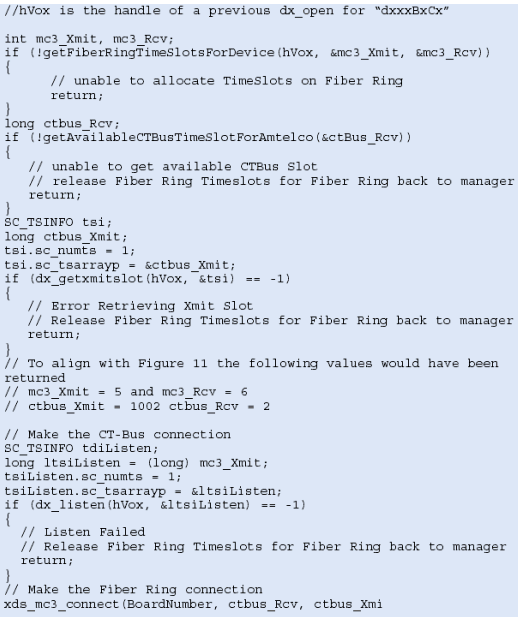 圖12是服務(wù)器1上建立連接所需的代碼示例,注意:xds_mc3_listen 和 xds_h100_listen函數(shù)不能以相同的方式看到連接,使用這些函數(shù)以前請(qǐng)參考API手冊確信這些函數(shù)的功能。
